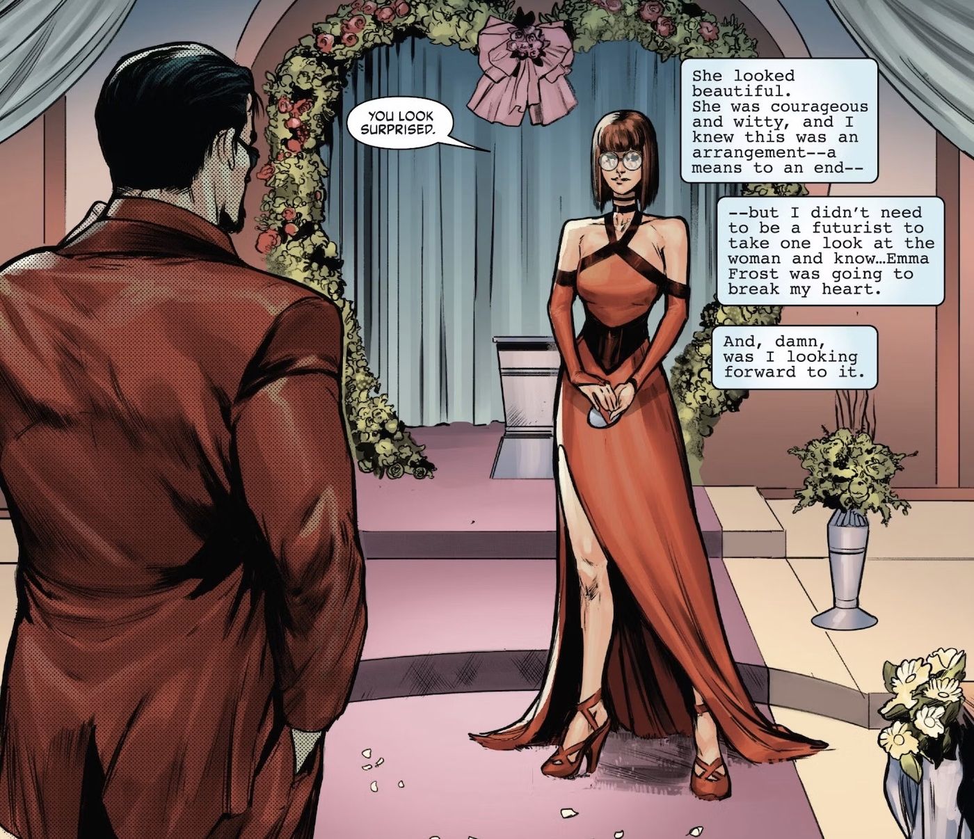 Por más confusa que pueda parecerle al público en general la aparente caída de Tony Stark en el alcoholismo y la boda en Las Vegas impulsada por las juergas, el ataque psíquico nupcial de Hazel y Tony a Feilong parece ser un gran éxito. Si tan solo la feliz pareja pudiera sacar a Rhodey de prisión y a ellos mismos fuera del bolsillo de Wilson Fisk, entonces el Sr. y la Sra. Emma Frost podrían tener una oportunidad de luchar. Bueno, eso y conseguir que todos los mutantes pasen sanos y salvos por el Caída de X. Entonces los lectores podrían ver si esta farsa de relación se convertirá en algo real para Hombre de Acero y la Reina Blanca.