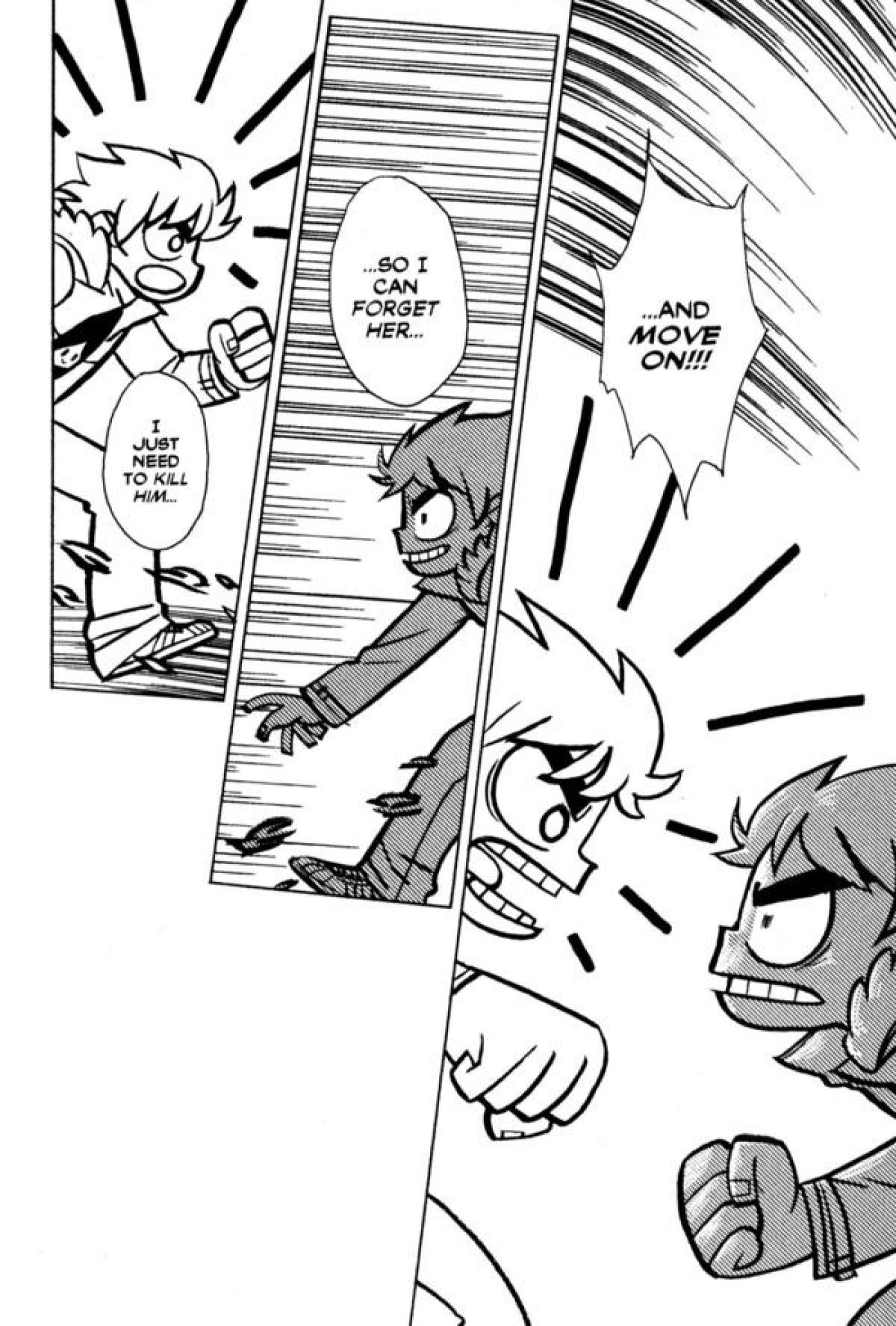 Pelearon un duelo importante, cuando Scott se enfrentó a su enemigo más personal. Sin embargo, Nega-Scott era más que un simple enemigo para Scott Pilgrim, ya que su existencia albergaba un significado mucho más profundo.