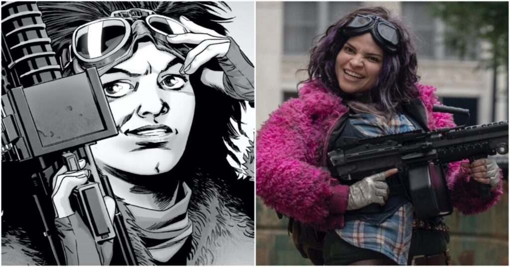 ¿Quién es Princess, la colorida y alegre sobreviviente del apocalipsis zombie en Los muertos vivientes? Inspirado en la “Princesa de Pittsburgh” de los cómics: “princesa” porque reina “hace [her] suena viejo “- Juanita Sánchez (Paola Lázaro) gafas deportivas, cabello teñido de púrpura y una chaqueta rosa mullida cuando se encuentra con una expedición dirigida por Eugene (Josh McDermitt) en el episodio de la temporada 10” Mira las flores “. Con el pie izquierdo con Yumiko (Eleanor Matsuura) y el Rey Ezekiel (Khary Payton) en “La Torre”, el ex superviviente solitario se une al grupo de Eugene mientras se dirige a su encuentro con una nueva comunidad en “A Certain Doom”.
