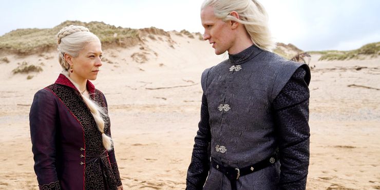 Parte de esto es que Daemon lo menospreció después de la muerte de su hijo en el parto, y con Rhaenyra como su única hija, fue una elección comprensible. Sin embargo, Viserys luego tendría hijos con su segunda esposa, Allicent Hightower (interpretada por Emily Carey y Olivia Cooke). A pesar de esto, Viserys se niega a nombrar a su hijo mayor, Aegon, como su nuevo heredero. Viserys es un buen hombre, pero tendía a apegarse a las decisiones que tomaba (y al hacerlo se habría arriesgado a que pareciera débil e indeciso). Además, ya había comenzado a preparar a Rhaenyra para ser Reina. Fue una elección audaz y con importantes ramificaciones.