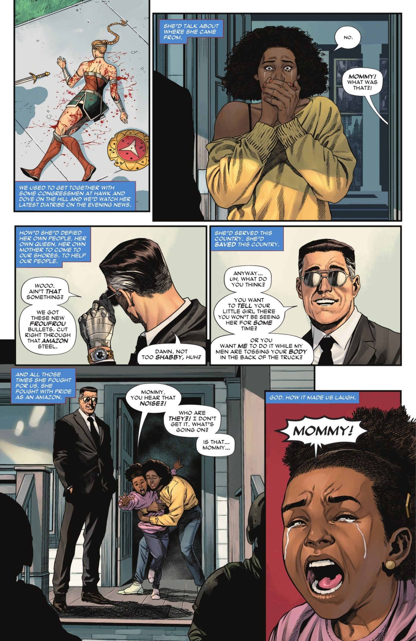 Y ahora, Sargent Steel ha regresado, con una ventaja más dura que nunca. King y Sampere han amplificado los peores rasgos de carácter de Sargent Steel, a saber, su patriotismo ciego y su devoción al gobierno de los Estados Unidos. Steel es retratado como un modelo de masculinidad tóxica, una consecuencia natural de su devoción fanática por la ley y el orden. Sargent Steel representa el autoritarismo y la opresión, dos conceptos que lo ponen en desacuerdo con Wonder Woman. Sargent Steel se ha vuelto despiadado con la edad y no se detendrá ante nada para expulsar a las Amazonas que ve amenazando el estilo de vida estadounidense. Mujer Maravilla tendrá la pelea de su carrera contra este nuevo y despreciable rival.
