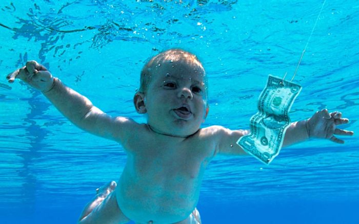 La portada de “Nevermind” está considerada como una de las más icónicas de la historia del rock y muestra a un bebé buceando en una piscina y a la caza de un billete de un dólar.