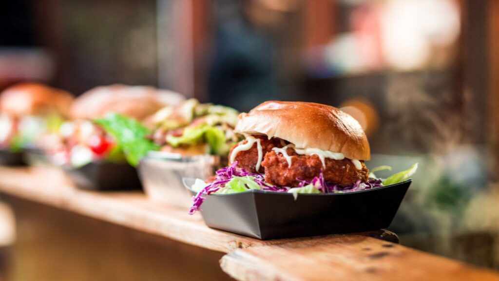 En el mismo año se estableció una nueva especialidad: la hamburguesa. Los sándwiches de carne (acompañados de patatas fritas) hicieron la fortuna de las primeras cadenas como A&W y White Castle. Este último, para atraer nuevos clientes, creó un sándwich de forma cuadrada, todavía el más vendido, el «White Castle Slider», y se distinguió por el uso de publicidad y cupones de descuento.