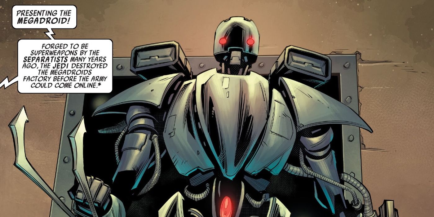 “/> Una rara reliquia de las Guerras Clon, El Megadroid era un droide de batalla extremadamente poderoso creado por los separatistas., aunque nunca se produjo en masa gracias al Gran Maestro Jedi Yoda y Anakin Skywalker, quienes destruyeron la fábrica crucial donde se estaban construyendo. Habiendo recuperado el único prototipo, Jabba actualizó el Megadroid con todo tipo de armas y mejoras, incluido un núcleo neuronal extremadamente avanzado. Como tal, la superarma estaba destinada a proporcionarle a Jabba aún más control sobre la galaxia a través del miedo y la pura potencia de fuego.