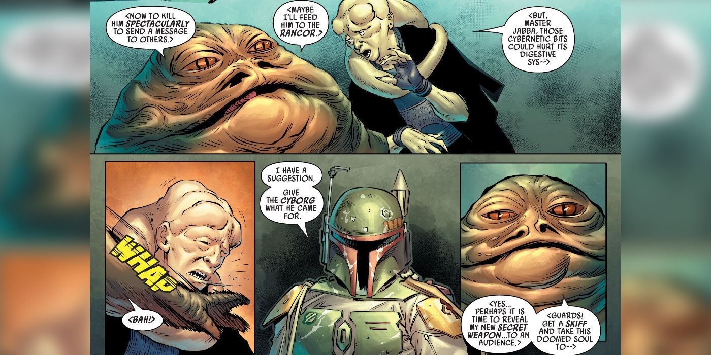 Como se ve en el número final de Star Wars: Cazarrecompensas por Ethan Sacks, Jethro Morales y Paolo Villanelli, La cazarrecompensas cyborg Beliert Valance irrumpió en el palacio de Jabba.. Mientras que Valance fue capturado posteriormente, Boba Fett sugirió que Jabba debería dar un ejemplo del cyborg al revelar su nuevo premio.
