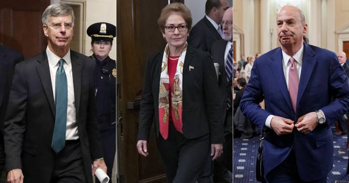 “Hay una historia de confidentes, canales paralelos y corrupción”. El embajador interino es un veterano diplomático, con medio siglo de servicio a las espaldas, y con la costumbre de tomar notas sobre sus actividades y reuniones diarias. Sus apuntes se han convertido estos días en dinamita en Washington. En su declaración, que abrió la fase de comparecencias públicas el 13 de noviembre, señaló, entre otras cosas, que había oído decir a Tim Morrison, asesor del Consejo de Seguridad Nacional, que las ayudas militares estaban condicionadas a las investigaciones que quería Trump.