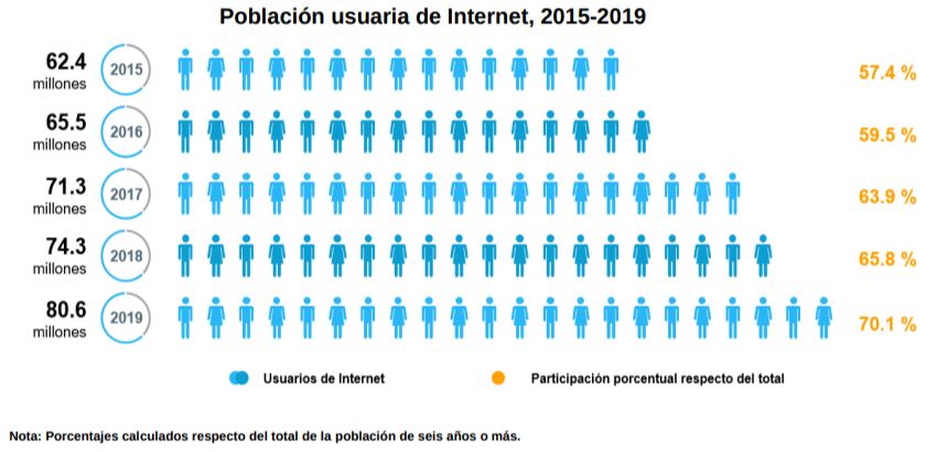 La más reciente Encuesta Nacional sobre Disponibilidad y Uso de Tecnologías de la Información en los Hogares (ENDUTIH) revela que, aunque en México hay 80.6 millones de usuarios de Internet, que representan el 70.1% de la población de seis años o más, la mayoría de ellos viven en ciudades.