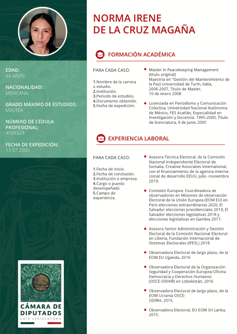 -Recientemente, de julio a noviembre del año pasado, se desempeñó como asesora técnica electoral, de la Comisión Nacional Independiente Electoral de Somalia, Creative Associates International, con el financiamiento de la agencia internacional de desarrollo de EU.