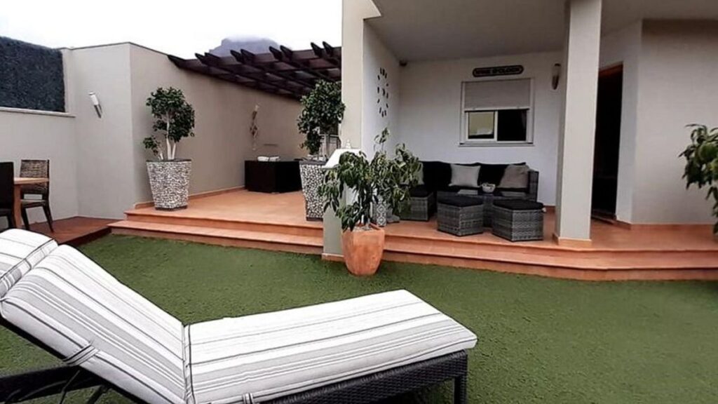 El exterior tiene un jardín muy amplio con jacuzzi y varias terrazas. En cuanto al interior, en el primer piso hay tres habitaciones dobles, cada una con su propio balcón privado, y dos de ellas con baño en suite. En la planta baja hay otro dormitorio doble, así como una sala de juegos y un estudio. También cuenta con trastero y garaje con espacio suficiente para dos vehículos.