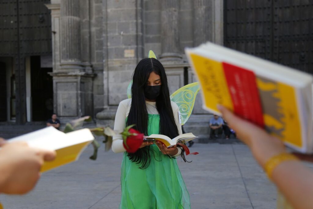 La industria del libro en México, como tantas otras en todo el mundo, se resintió por el parón impuesto por la crisis sanitaria. En 2020, la producción de títulos en el país cayó un 31% y la facturación de libros impresos un 25%, según datos de la Cámara Nacional de la Industria Editorial. Un año después, esos indicadores volvían a sus números habituales con 24.000 obras registradas y casi 12.000 millones de pesos facturados en 2022. Ahora, el nombramiento de la UNESCO es “la gran oportunidad de reposicionarse como la capital cultural de Latinoamérica”, destacó Lemus, que prevé una inversión de 100 millones de pesos en un año. El alcalde bajó del escenario y recibió una rosa roja como la que recibiría cada uno de los participantes que subieran al escenario a mantener la lectura andando.