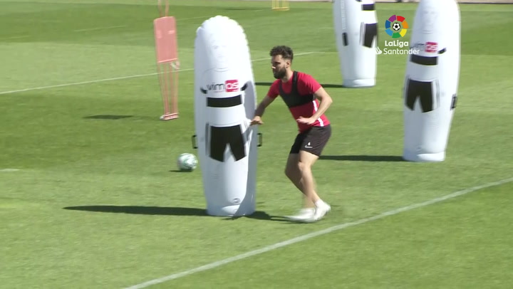 Como es obligatorio en esta primera fase de la vuelta al trabajo tras el confinamiento por el coronavirus, los jugadores se ejercitaron de forma individual, integrados en diferentes grupos que no coincidieron en la ciudad deportiva y cumpliendo con estrictas normas de higiene y seguridad.
