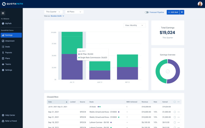 “Con QuotaPath, un equipo de ventas puede pronosticar más ganancias y crear más objetivos en torno a lo que quieren hacer”, dijo Bruno, “y conectar esos objetivos con el resultado final de la empresa”.
