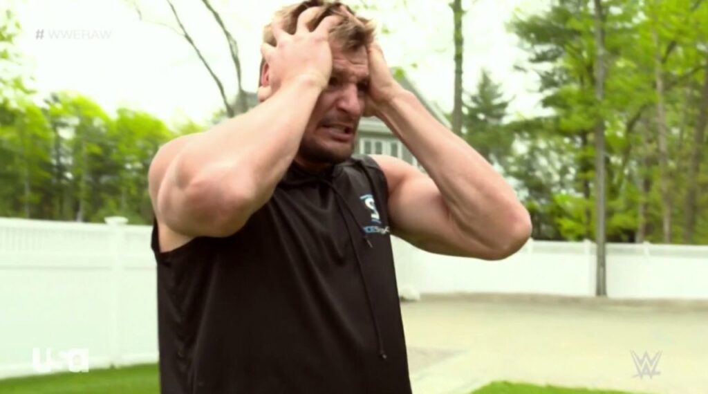 Parece que Rob Gronkowski no llevará el Campeonato de la WWE 24/7 a la temporada 2020 de la NFL después de todo. En la edición de esta semana de Monday Night Raw se mostró un video de la casa de Gronkowski, en el que se estaba preparando para filmar un video de TikTok. De repente, el hombre que filmó el video reveló que llevaba una camisa de árbitro, y La verdad apareció por detrás con un uniforme de jardinero. La verdad arranó en el extremo apretado All-Pro para los tres conteos.