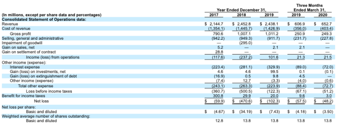 Créditos de imagen: SEC Mirando en la columna de la extrema derecha, podemos ver una empresa con ingresos materiales, aunque con márgenes brutos reducidos para una empresa supuestamente tecnológica. Generó $ 21.5 millones en ganancias operativas del primer trimestre de 2020 de sus $ 652.7 millones en ingresos del trimestre. Sin embargo, los gastos por intereses de $ 72 millones en el trimestre ayudaron a llevar a Rackspace a una profunda pérdida neta de $ 48.2 millones.