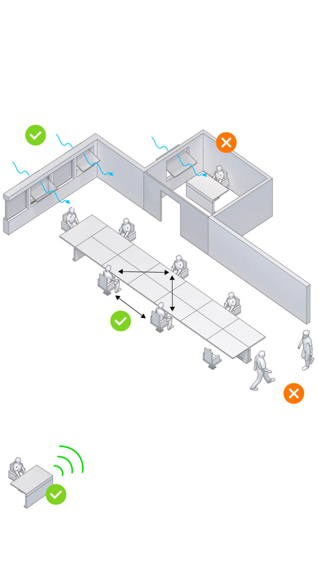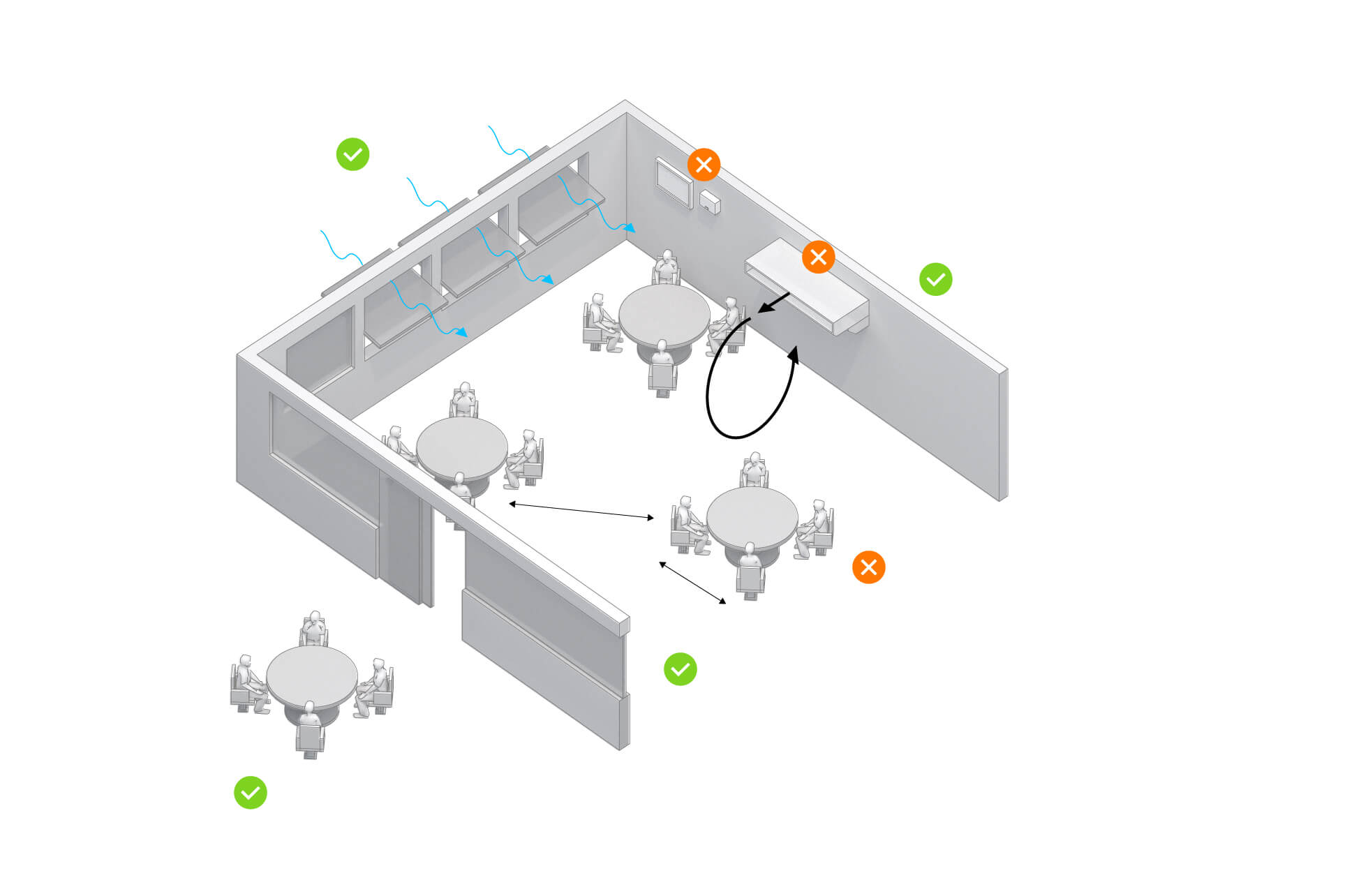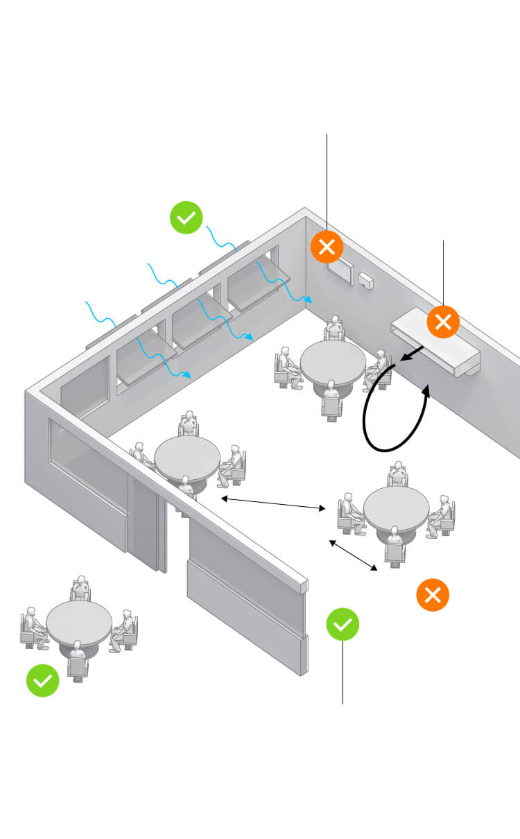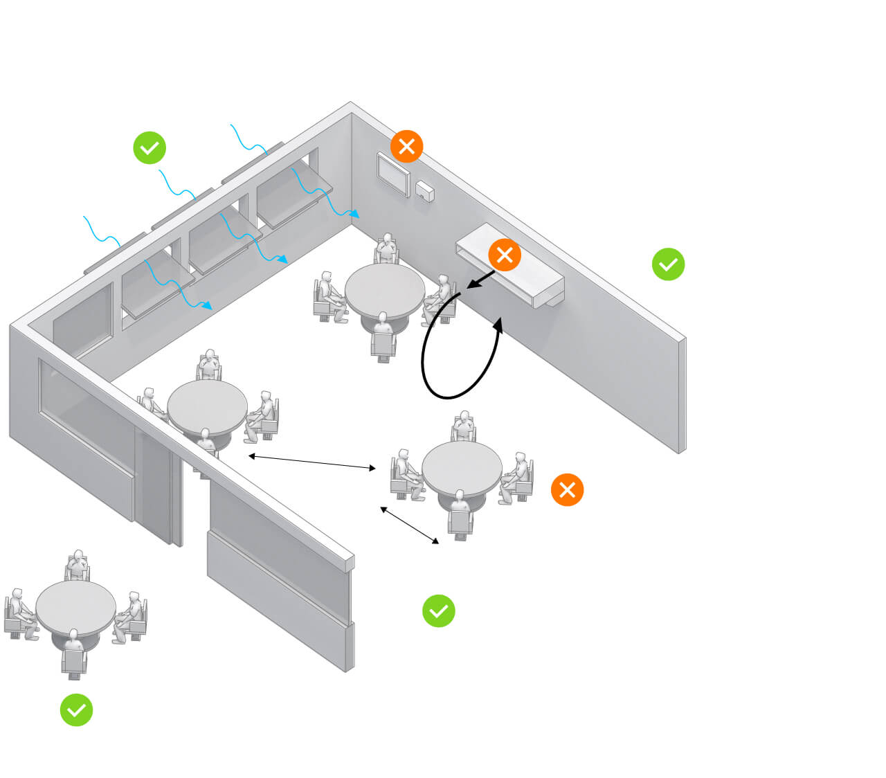 Evitar aglomerar empleados en reuniones o zonas de café y comidas