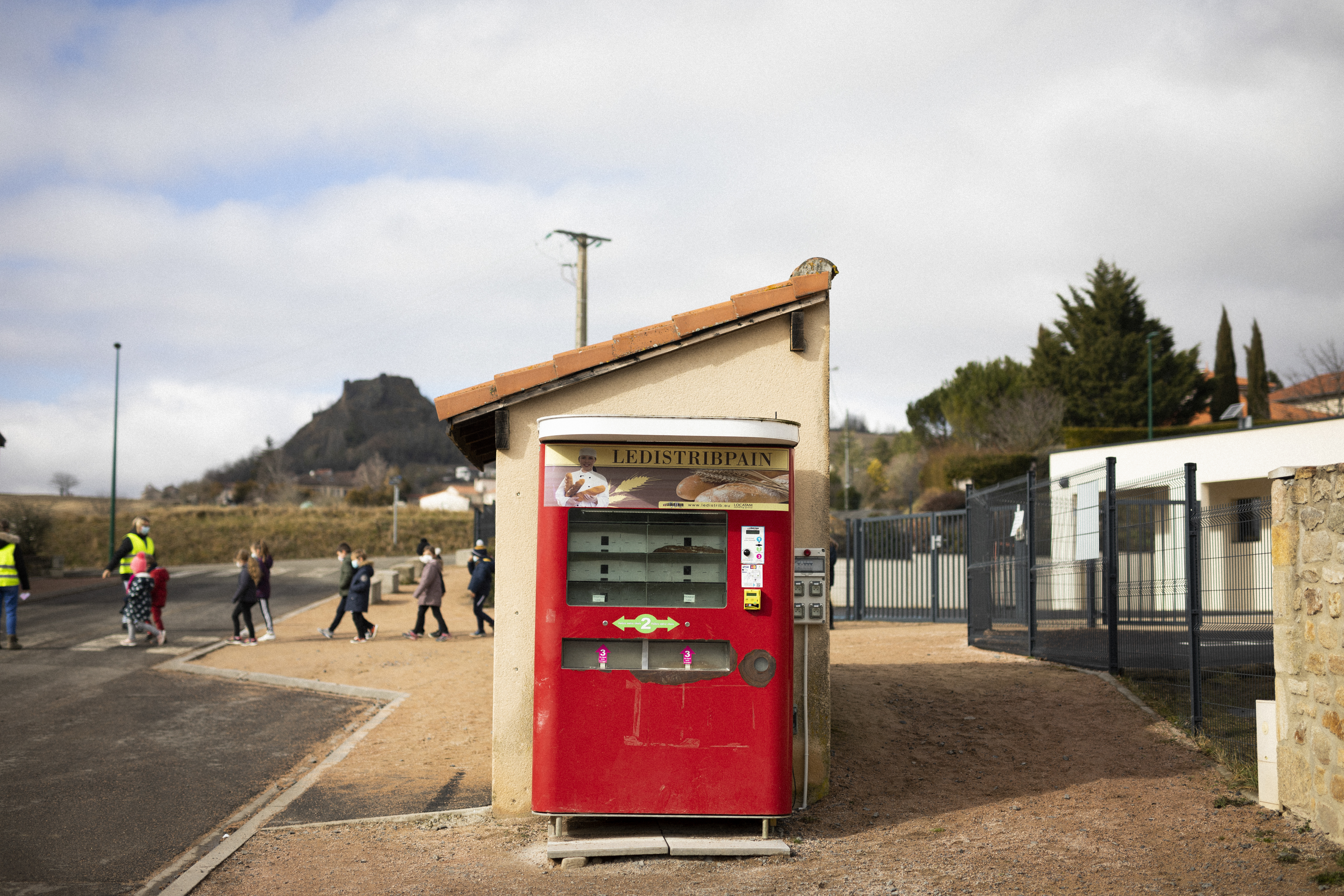 En Yronde-et-Buron, un pueblo de 600 habitantes al pie del Macizo Central, nos encontramos con Pascal Julien. Monsieur Julien es un panadero particular. Un panadero sin panadería. Un día decidió cerrarla y sustituirla por máquinas expendedoras de barras de pan. Tiene cinco distribuidas por varias localidades de la zona. Ahora pasa el día de un pueblo a otro con su furgoneta, distribuyendo por las máquinas las barras que fabrica en su horno. Como llenar el depósito cuesta más dinero, él ha encontrado una solución: “El precio ha subido un 40%. Algunos colegas han aumentado el precio de la baguette. Yo no. Yo he reducido un poco su peso”.