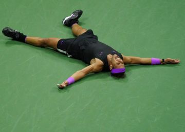 Mentalmente, Nadal está consumido. El subidón de adrenalina ha caído en picado tras lograr el objetivo y su cuerpo está fundido, de ahí que no sonría. Antes, se ha emocionado y ha derramado lágrimas cuando la organización del torneo ha proyectado un vídeo que repasa todos sus grandes éxitos, del primero al último. Ya está a un solo paso del gran Roger Federer, que ahora ve seriamente amenazado su registro de 20 grandes. “Siempre digo lo mismo: me encantaría ser el que gane más, pero no estoy pensando en eso y no voy a entrenarme cada día y jugar por eso. Lo hago porque me encanta. No puedo pensar solo en los Grand Slams. El tenis es más que eso”, responde.