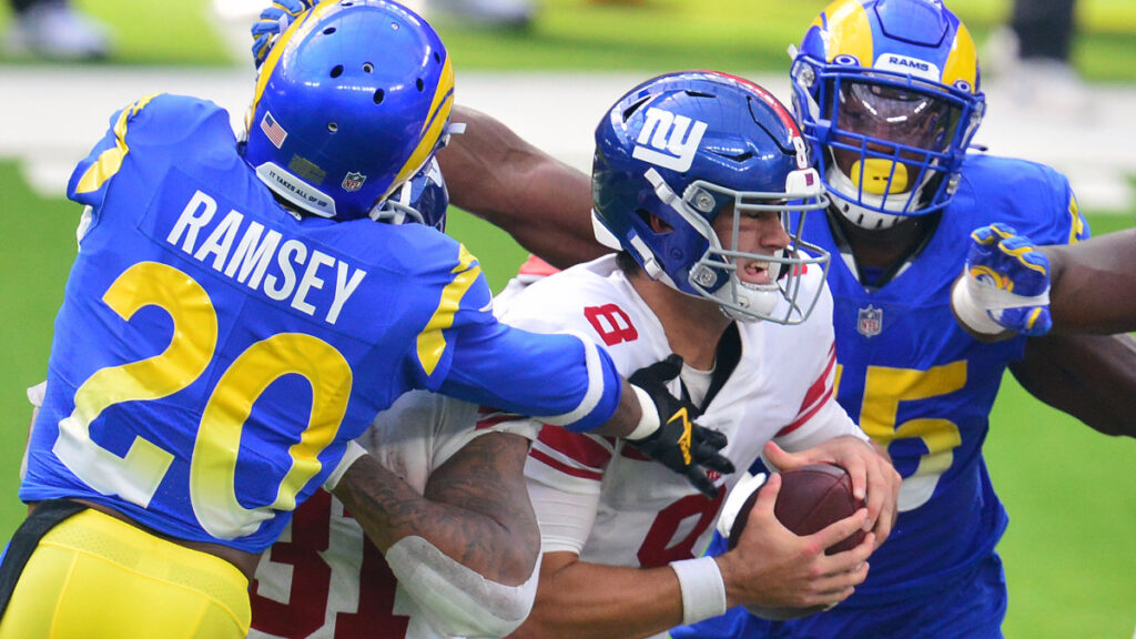 Darious Williams tuvo una redentora intercepción mientras en la yarda 7 de los Rams con 52 segundos de juego y los Rams (3-1) casi pierden el invicto en su nuevo estadio SoFi. El coach de primer año de los Giants Joe Judge sigue sin ganar.