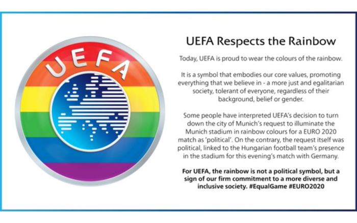 La UEFA expresó su “orgullo” por llevar los colores del arcoíris y aclaró que la prohibición de iluminar el Allianz Arena de Múnich con los colores que simbolizan la lucha del colectivo LGTBI no fue política, aunque sí la petición relacionada con la presencia de la Selección de Hungría en el estadio.