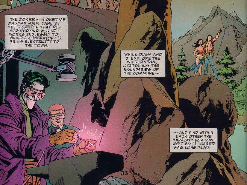 Durante los acontecimientos de Superman: fuegos distantesel mundo se acaba debido a un apocalipsis nuclear. Por alguna razón, la radiación nuclear cura al Joker de su locura. Luego se establece en la última colonia de supervivientes y comienza a utilizar sus increíbles habilidades como químico para ayudar a los supervivientes a vivir una vida mejor. En este mundo destruido, solo podría haber cuidado de sí mismo o seguir intentando lastimar a la gente, pero en lugar de eso, usa sus habilidades para ayudar a la genteincluso dando la bienvenida a Superman a esta comunidad con los brazos abiertos.