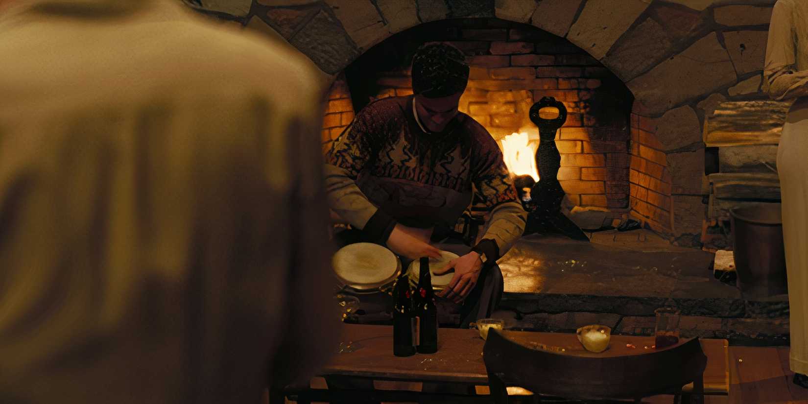 Uno de mis momentos favoritos del rodaje fue, obviamente, estoy jugando mucho a los bongos. Pero recuerdo haber filmado la escena de la fiesta de Navidad, y fue increíble. Estoy interpretando a los bongos, y más un extra glorificado en eso, pero mirando alrededor de la habitación, sin preocuparme por el tamaño de mi papel, solo mirando a su alrededor y ver, como, ok, está Kenneth Branagh, Emily Blunt, está Cillian Murphy, está Matt Damon, y todos están haciendo, como, el mejor trabajo de su carrera, y yo solo lo veo. Era increíble.