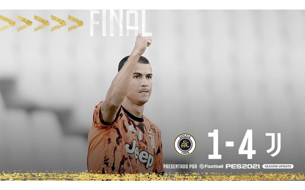 Cristiano Ronaldo inició en la banca, tras superar la Covid-19, pero comandó la victoria como visitante de la Vecchia Signora 1-4 frente a Spezia, con goles al 59′ y 79′ (penal).