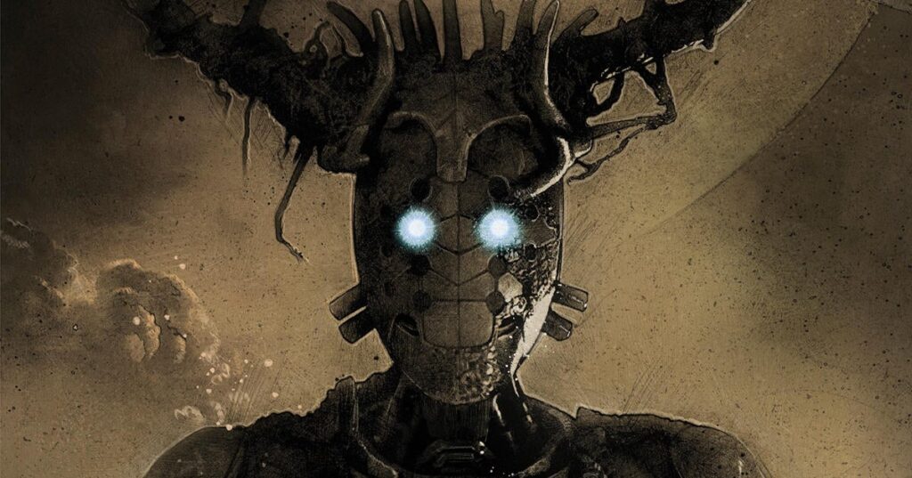 “Jimmy, lo veo como un comodín”, dijo Snyder. Imperio. “Está en un viaje de autodescubrimiento”. Y realmente es un gran viaje. Jimmy fue llevado al pacífico planeta de Veldt por el Imperium, la fuerza nefasta que espera exigir todos los preciosos recursos de Veldt y que obtiene más de lo que esperaba cuando el planeta reúne a un puñado de guerreros endurecidos para contraatacar. (Sí, la inspiración es siete samuráis.) Érase una vez, Jimmy fue uno de los muchos droides idénticos reunidos para servir a su rey en la guerra. Ahora, el Imperio lo ha reutilizado para hacer su trabajo pesado literal, y está listo para sufrir una transformación significativa en el transcurso de Luna rebelde primera parte y Dos.