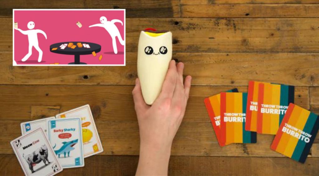 Como su nombre lo indica, el juego desarrollado por Exploding Kittens, “es lo que obtienes cuando cruzas un juego de cartas con el dodgeball (un juego donde se arrojan pequeñas pelotas). Pero en este caso lo que hay que hacer es intentar recolectar cartas iguales más rápido que tus oponentes mientras esquivas y lanzas burritos por el aire”.