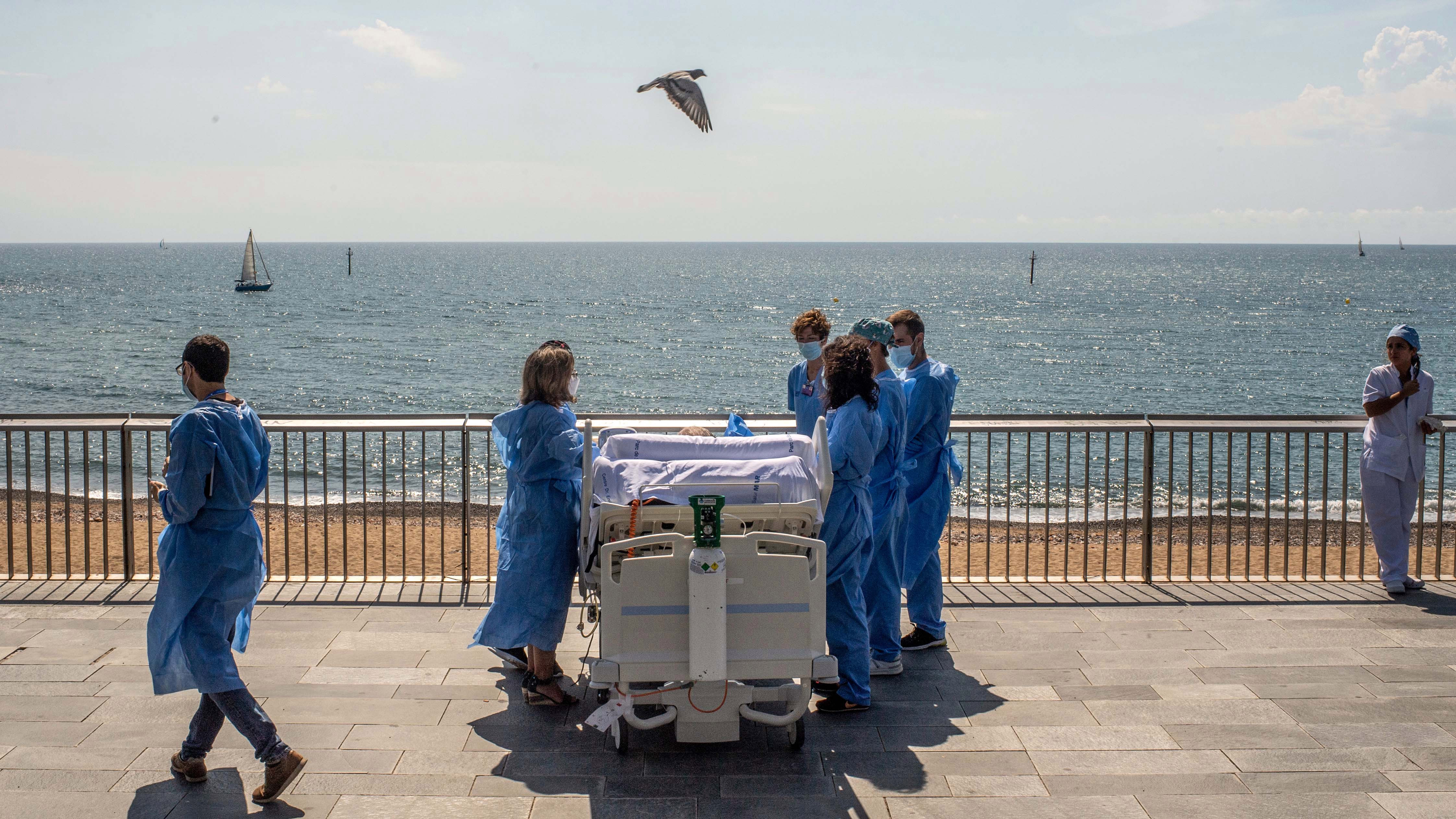 Un equipo médico del Hospital del Mar está estudiando si salidas breves a la playa, justo al otro lado de la calle, pueden ayudar a los pacientes de COVID-19 tras largas y en ocasiones traumáticas estancias en la UCI.