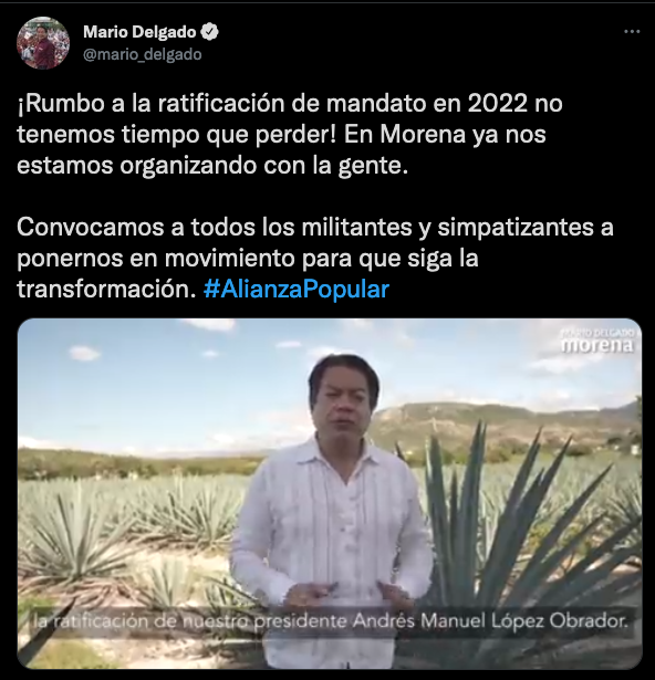 La segunda denuncia acusa a Mario Delgado, presidente nacional de Morena y a dicho instituto político, por diversas publicaciones realizadas en Twitter y en la página mariocd.mx, así como en el perfil de Facebook “Morena Sí”, en los que se hace mención al proceso de revocación de mandato.