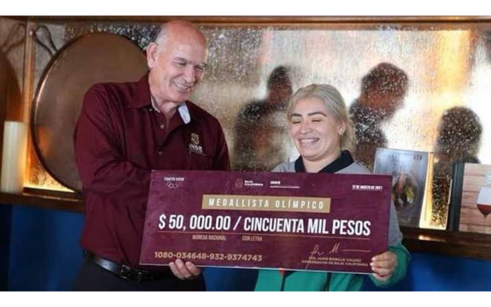 Aremi Fuentes, medallista de bronce en Tokio 2020, denunció que el gobierno de Baja California, encabezado por Jaime Bonilla, le entregó un cheque como premio a su desempeño en los Juegos Olímpicos, con valor de 50 mil pesos, pero el banco lo declaró inexistente.
