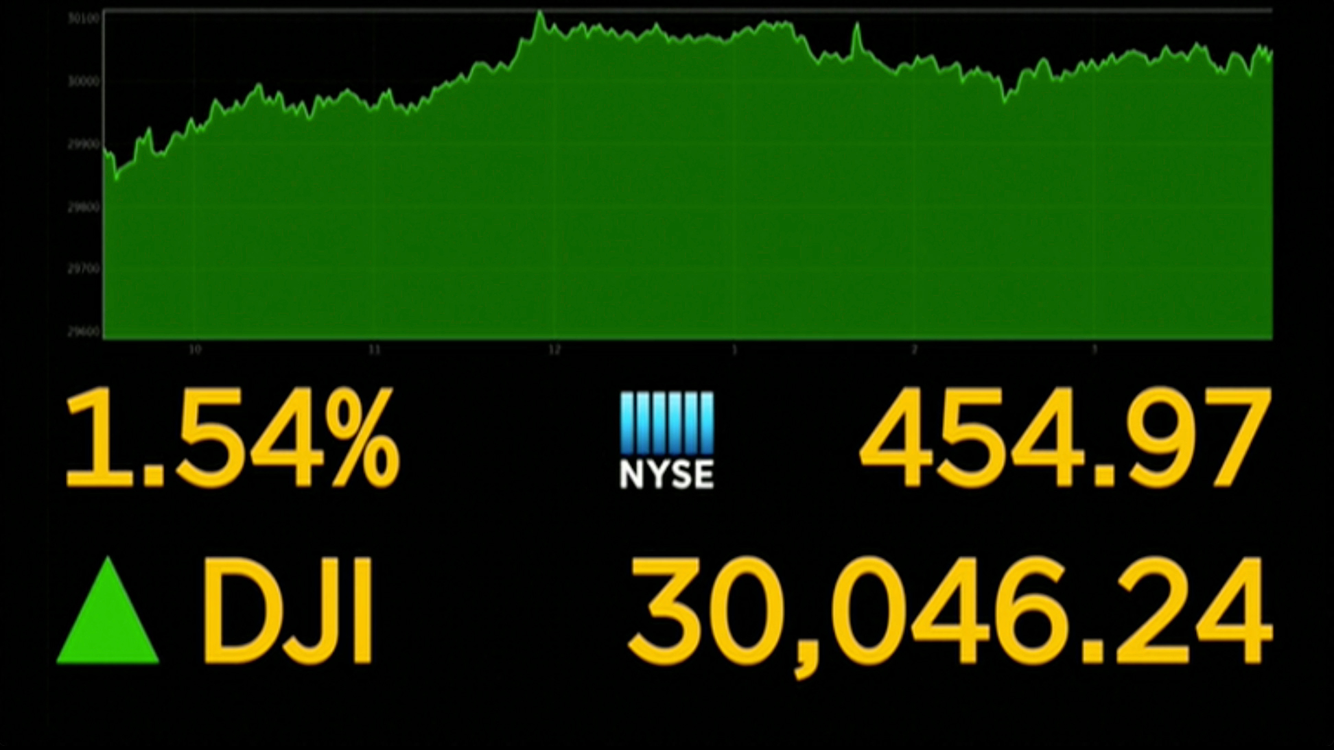 Al cierre en la bolsa de Nueva York, el Dow Jones subió unos 454 puntos, hasta las 30,046 unidades. Ese umbral nunca visto lo logró horas antes gracias al impulso de grandes cotizadas como Boeing, JPMorgan Chase, Chevron, IBM o American Express. El máximo del día fue 30,116.51 puntos.