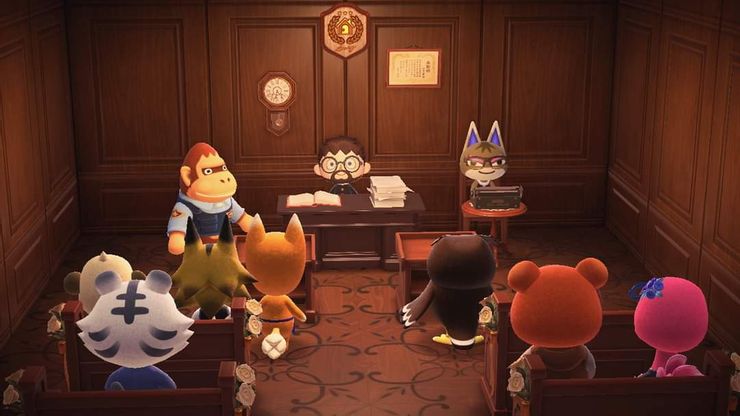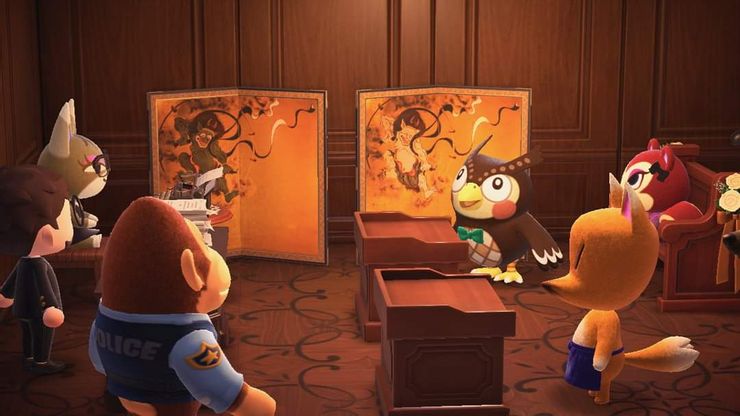 El usuario de Reddit, Rigel04, parece haber tenido suficiente de las actividades criminales de Redd, creando una sala de audiencias para llevar al zorro conspirador ante la justicia. En su publicación, el Cruce de animales fan preside el juicio como juez, con Kitty sentada a su derecha como taquígrafa de la corte, y Louie de pie amenazadoramente a su izquierda, actuando como oficial de seguridad de la corte. La galería pública está repleta de aldeanos que observan el desarrollo del juicio, con Blathers debidamente empleado como fiscal, habiendo lidiado con las numerosas falsificaciones de Redd. En otra captura de pantalla, se puede ver al fiscal Blathers mostrando los productos de Redd uno al lado del otro como evidencia, construyendo un caso sólido de las malas acciones del zorro.