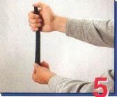 7. Empiece a deslizar rápidamente la nueva empuñadura sobre el eje con cinta tanto como sea posible.  Si las empuñaduras tienen “marcas de recordatorio”, asegúrese de que apunten hacia la cabeza del palo.