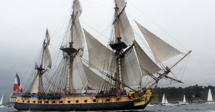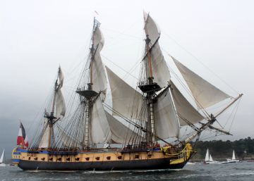 Todo el mundo tiene sus barcos favoritos. Yo tengo una debilidad por el Cutty Sark, el famoso clíper, una maqueta enorme del cual, ensamblada por mi padre y exhibida en una gran urna de cristal, era lo primero que te encontrabas al entrar en casa, para ir creando ambiente. También siento como muy mío el Bismarck, de abatido orgullo, y otros navíos: el drakar Gran Serpiente, el Atlantis, la Bounty, la Compass Rose, la Hispaniola, el Pequod, el Patna, la Perla Negra (las dos, la de Sparrow y la de mi cuñado), el schooner ruso Demeter, cargado con cincuenta ataúdes repletos de tierra transilvana, que eso sí que es compañía animada para navegar… Entre toda esa heterogénea flota preferida, figura la hermosa fragata francesa de tres palos Hermione, “la frégate de la liberté”, a la que me une estrechamente un afecto nacido de haber podido observar como la construían. No la original, claro, de 1779, sino la réplica exacta que se construyó en el mismo arsenal de Rochefort de la primera y que fue botada el 7 de septiembre de 2014.