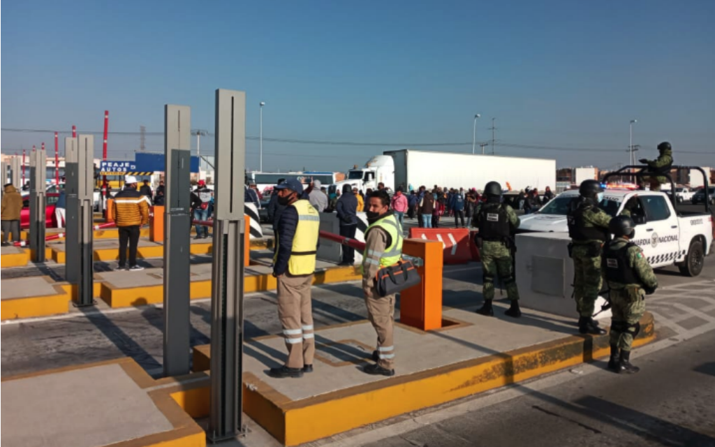 La operación se replicó en la México – Pachuca, donde efectivos de la Guardia Nacional retomaron el control del cobro del peaje y evitó la presencia de manifestantes.