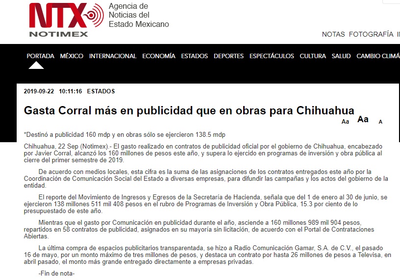 En relación con el contenido que se difundió en medios, instó a revisar el presupuesto de las entidades federativas para que se den cuenta que Chihuahua es la que menos recursos destina, incluido el gobierno federal actual, a medios de comunicación.