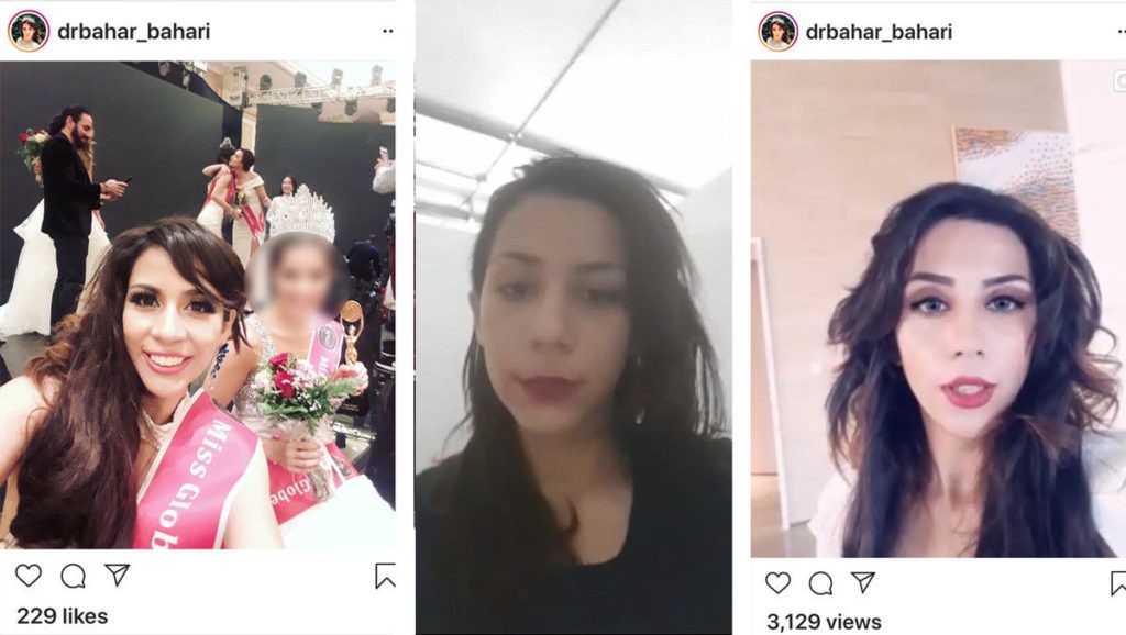 Bahareh fue la representante de Irán en el certamen Miss Intercontinental que se celebró el año pasado en Manila, ocasión en la que mostró un cartel de apoyo a Reza Pahlavi, antiguo príncipe heredero iraní y principal disidente del régimen de los ayatolas.