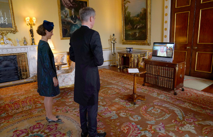 El martes, realizó dos audiencias virtuales para dar la bienvenida a los nuevos embajadores en Reino Unido de Corea del Sur y Suiza. Las imágenes mostraron a la monarca ataviada con un vestido amarillo, sonriendo y con su aspecto habitual durante el compromiso.
