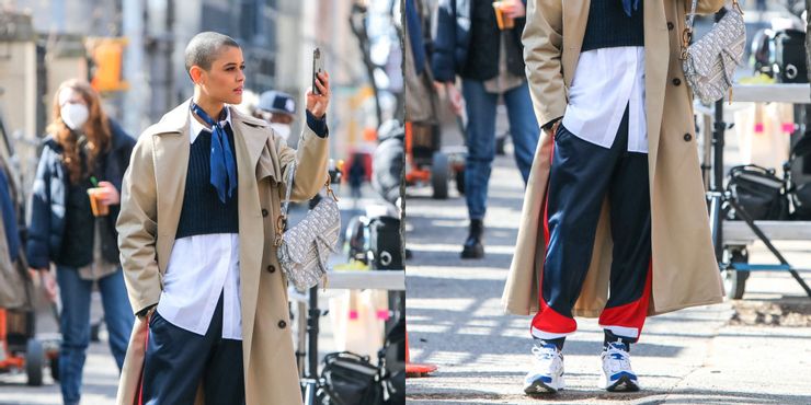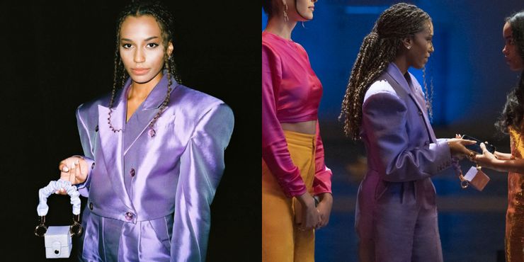 Monet apareció fabulosamente en el desfile de Christopher John Rogers, con un llamativo traje morado metálico del propio diseñador. Todo en este look grita alta costura, especialmente el diminuto bolso de Monet. La combinación de blazer recortado y pantalones plisados ​​es una completa victoria, y apenas necesita accesorios, tal como está diseñado aquí.