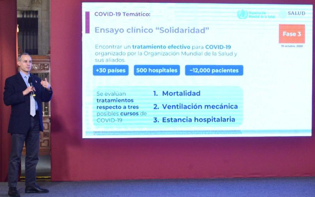 El funcionario federal indicó que el ensayo clínico “Solidaridad” realizado por la Organización Mundial de la Salud (OMS) se centró en reducir la mortalidad, la probabilidad de necesitar ventilación mecánica, y la estancia hospitalaria.