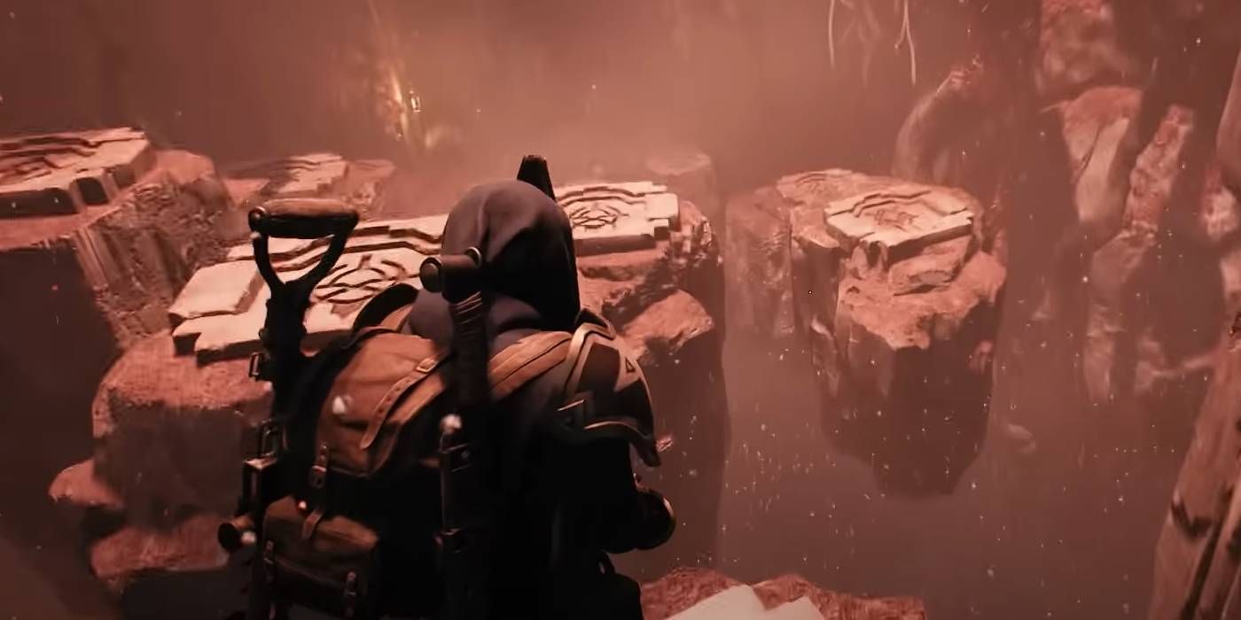“/> El otro rompecabezas principal que se encuentra en The Lament consiste en varios pilares flotantes que cuelgan en el aire sobre un abismo sin fin que parece imposible de cruzar. Puedes encontrar esta área. profundo bajo tierraviajando por debajo de la sección del Resto 2 mazmorra donde estaba el rompecabezas del dial. cada pilar tiene un símbolo grabado en ellos mientras descienden hacia un cofre en la parte inferior.