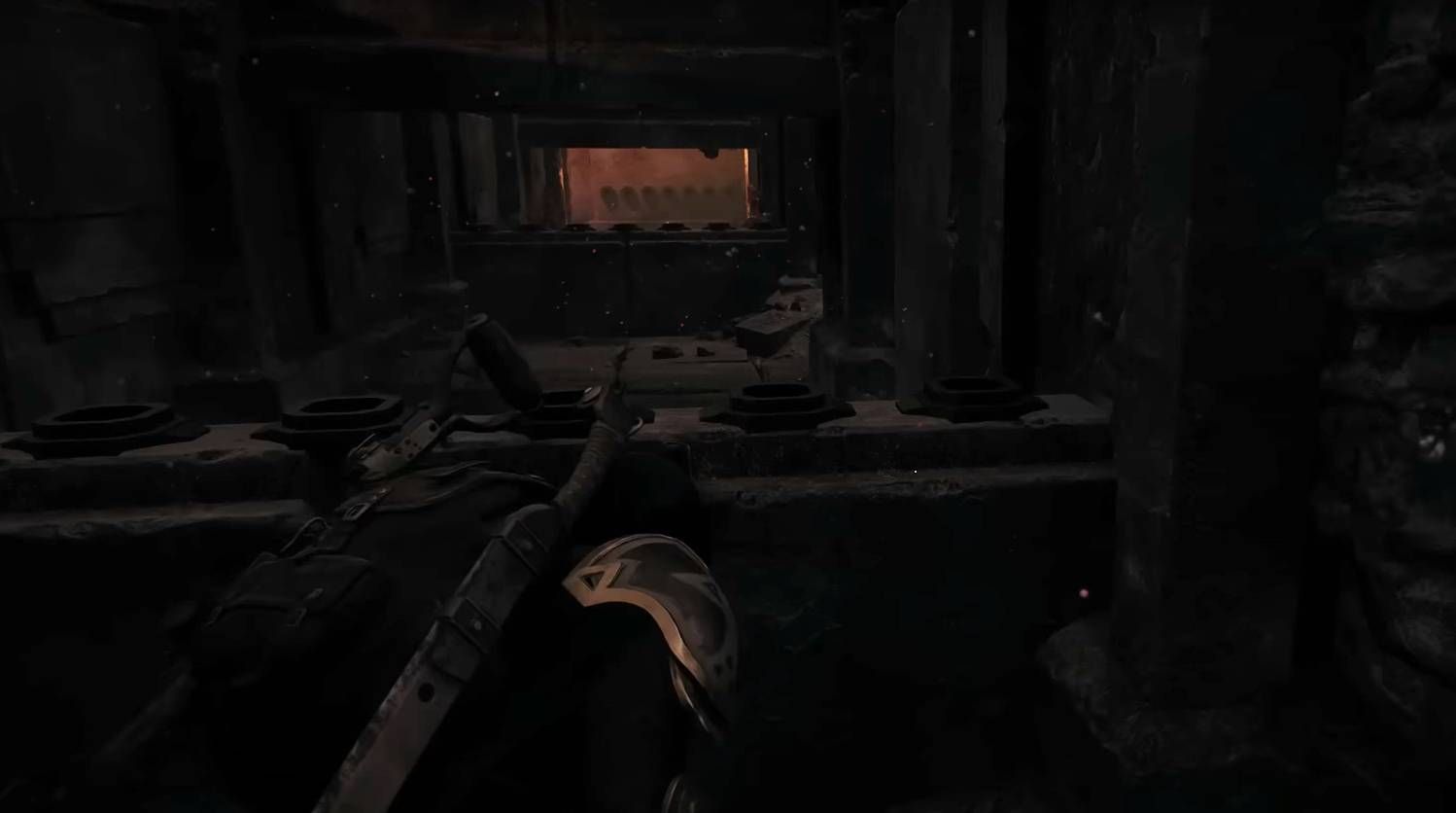 Hay dos pasillos más para moverse, y el siguiente tiene un techo bajo que tu personaje tiene que agacharse para pasar. El último pasillo tiene áreas para agacharse, repisas con flechas que se disparan verticalmente y las mismas ranuras en las paredes que se disparan como antes. Memoriza el momento de las flechas. maniobrar con cuidado en estos espacios, lo que lo llevará hacia una palanca que abre una puerta que conduce más profundamente al Resto 2 calabozo.