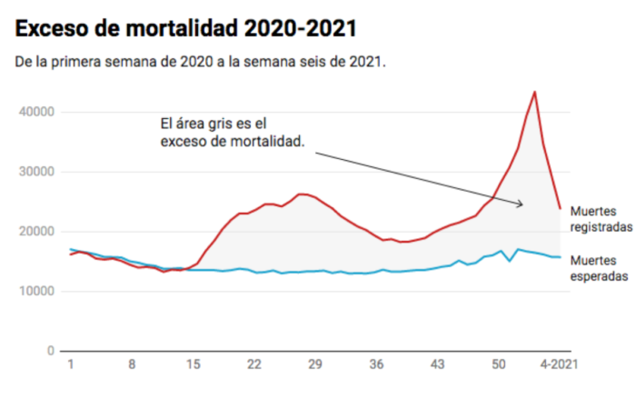 Entre 2020 y las primeras seis semanas de 2021 México registró 417 mil muertes más de las proyectadas, de las cuales 294 mil 287 están directamente relacionadas con Covid-19.