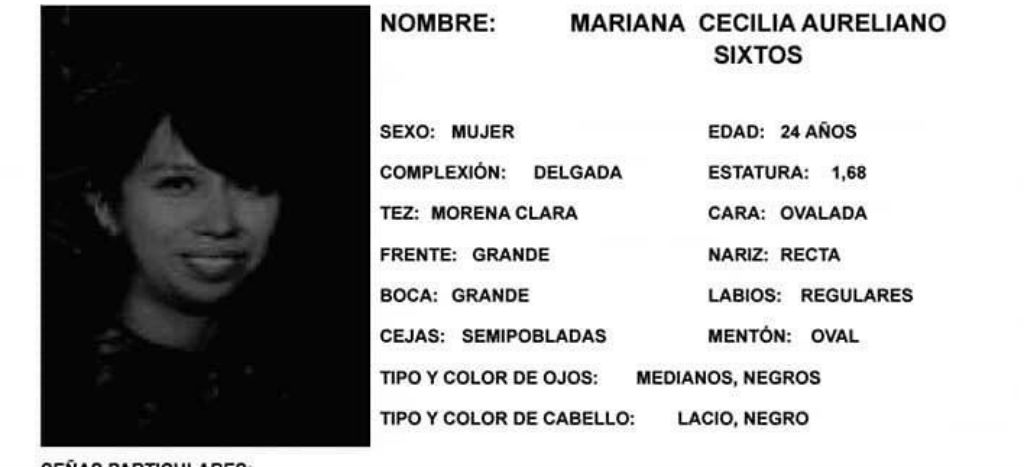 Familiares de Mariana Cecilia Aureliano Sixtos dieron aviso a la Fiscalía capitalina, la cual emitió la ficha correspondiente.