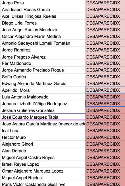 Guadalupe Ramos Ponce, directora de la Cladem, dio a conocer la siguiente lista de presuntos desaparecidos: