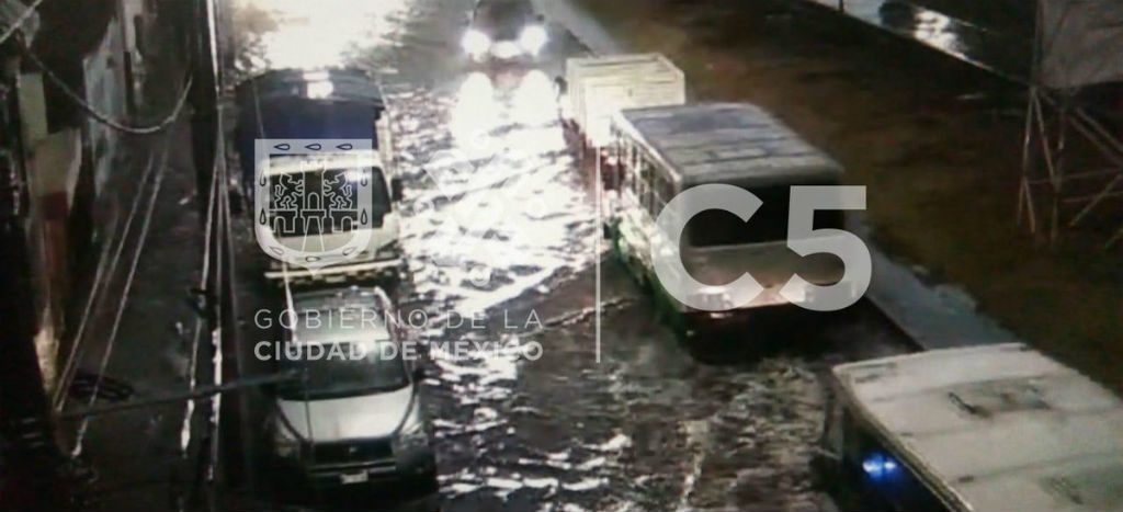 La lluvia provocó inundaciones sobre todo en Iztapalapa, en vías como Avenida Texcoco y Calzada Ignacio Zaragoza.