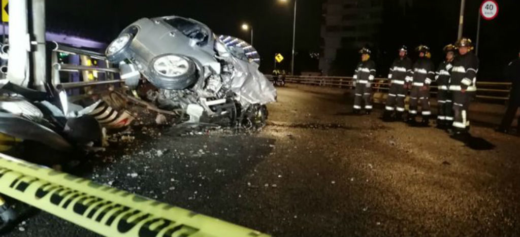 Aparatoso accidente se registró esta madrugada en el segundo piso de Periférico altura San Jerónimo dirección Sur.