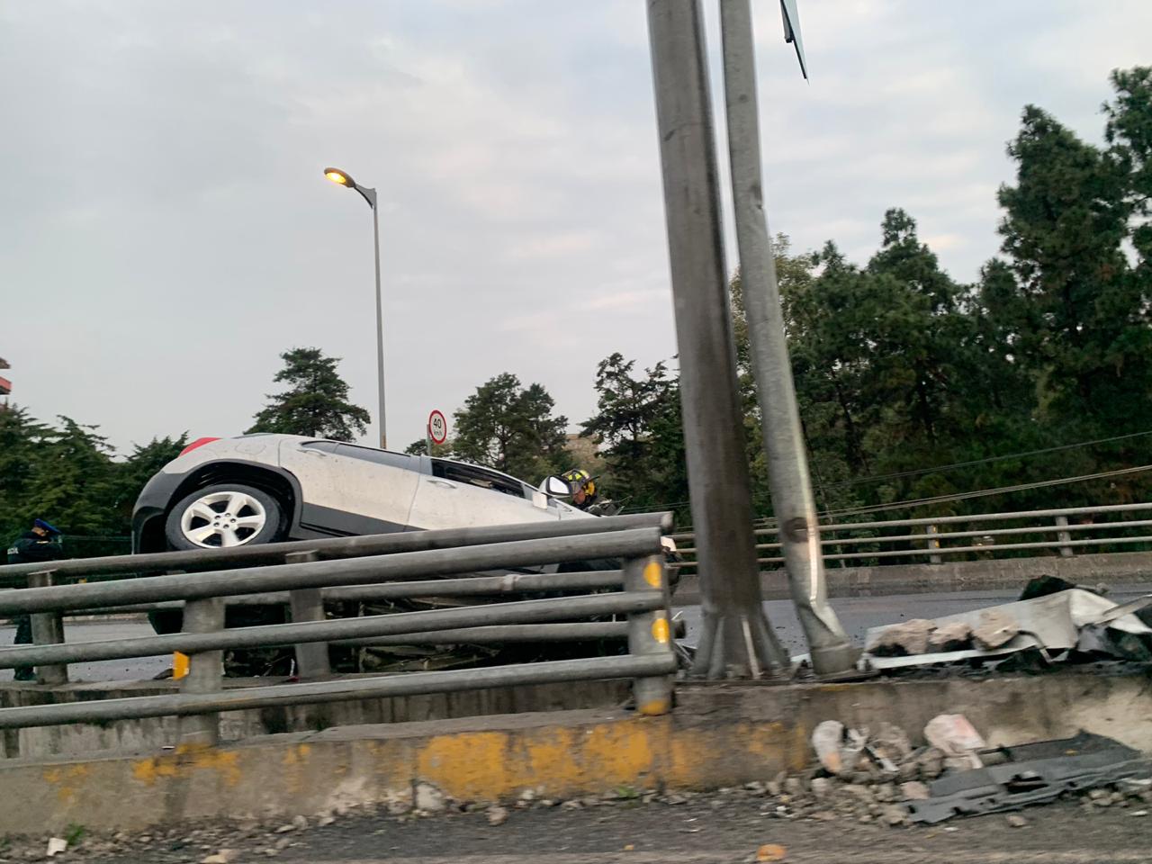 Aparatoso accidente se registró esta madrugada en el segundo piso de Periférico altura San Jerónimo dirección Sur.