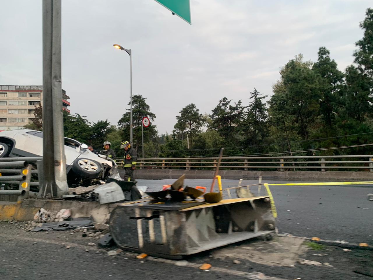 El accidente se registró a la altura de la aguja para la incorporación hacia avenida Universidad y Copilco, donde elementos del Heroico Cuerpo de Bombero laboran para retirar el cuerpo de la joven que perdió la vida tras impactar su automóvil.